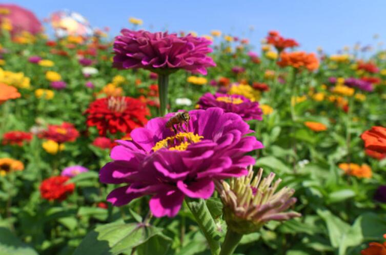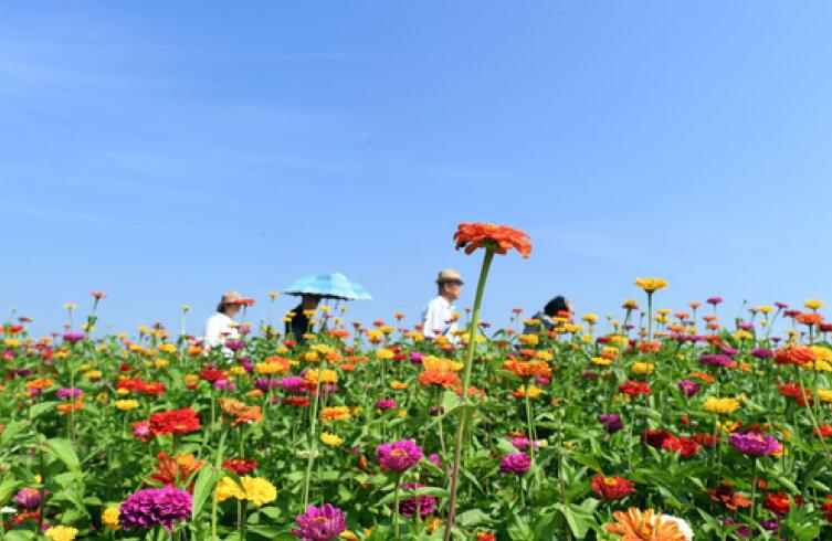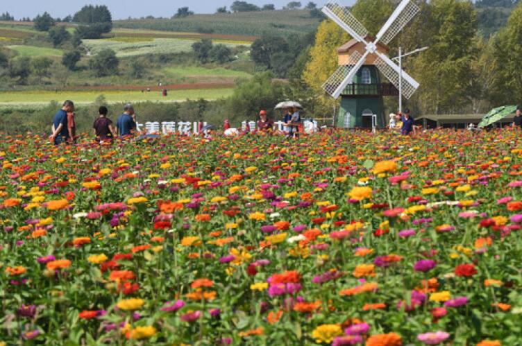 9月4日,长春市莲花山生态旅游度假区花田里鲜花绽放。