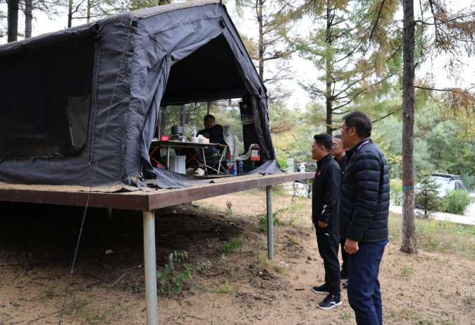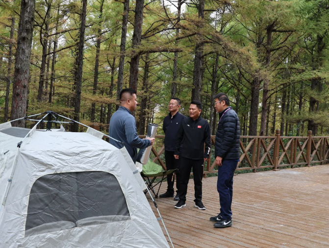 王小明先后来到天定山Somewhere露营地、赵家郊野公园、天定山足球场,现场了解“双节”期间项目运营情况、活动组织情况,以及安全生产和防火宣传情况,与经营业主、游客交流,听取意见和建议。