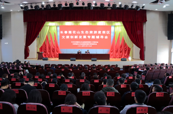 3月19日,为贯彻落实习近平总书记听取吉林省委省政府工作汇报时重要讲话精神,准确把握当前国内文旅产业发展趋势和脉搏,更好立足本地实际,积极推动莲花山文旅产业高质量发展,长春莲花山生态旅游度假区组织召开文旅创新发展专题辅导会。全国工商联旅游业商会常务会长、北京巅峰智业旅游文化创意股份有限公司创始人刘锋博士作专题辅导。度假区管委会副主任张民主持。