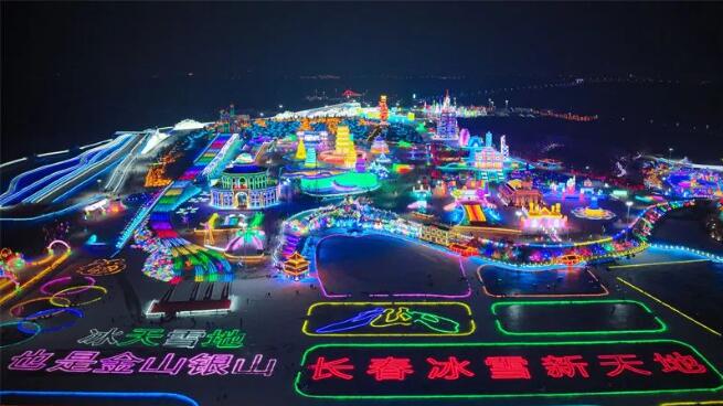 Changchun New Ice - Snow World, located in the ChangChun Lianhuashan Eco-tourist Resort, is the world's largest ice and snow theme amusement park as well as a core component of Tianding Mountain Tourist Resort Town, a national 4A-level scenic area. This year, within a park covering 1.56 million square meters, using 428,000 cubic meters of ice and 310,000 cubic meters of snow, Changchun New Ice - Snow World has constructed 120 single ice and snow structures. With the support of various photoelectric technologies, it presents a colorful and magnificent scene of a flourishing ice and snow kingdom.