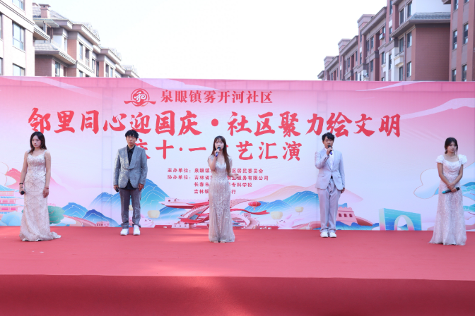 9月29日,由莲花山度假区泉眼镇雾开河社区居民委员会主办,吉林省雾开河物业服务有限公司、长春市金融高等专科学校、吉林银行文化支行共同协办的“邻里同心迎国庆、社区聚力绘文明”主题庆祝活动,在莲花雅居小区举行。