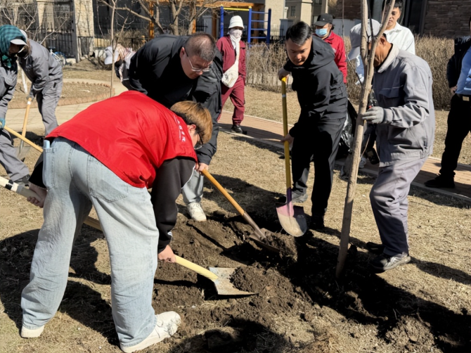 签约仪式结束后,公益性卫生整治及植绿护绿活动正式拉开帷幕。林溪社区和万科物业工作人员以及学生志愿者共60余人,迅速投入到劳动当中。活动现场,大家热情高涨、干劲十足,植树组和清洁组两大队伍同步开展工作。植树组的成员们手持铁锹,挥锹培土、扶苗围堰,将70余株新苗栽种在小区的闲置地块,为小区增添一抹新绿、注入一份生机;清洁组的成员们则重点清理出小区内道路两侧、绿化带中的石块、生活垃圾等杂物5车,全力改善小区环境。