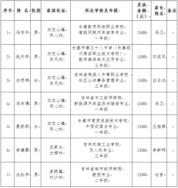 为巩固脱贫攻坚成果,提升脱贫人口生活质量,解决实际问题,根据省市相关要求,经各乡镇梳理排查,现将符合补助标准的补助对象冯东升、姚天宇、白雨桐、冯东博、聂莉莉、李建霖、池松宇共七名学生相关信息予以公告。